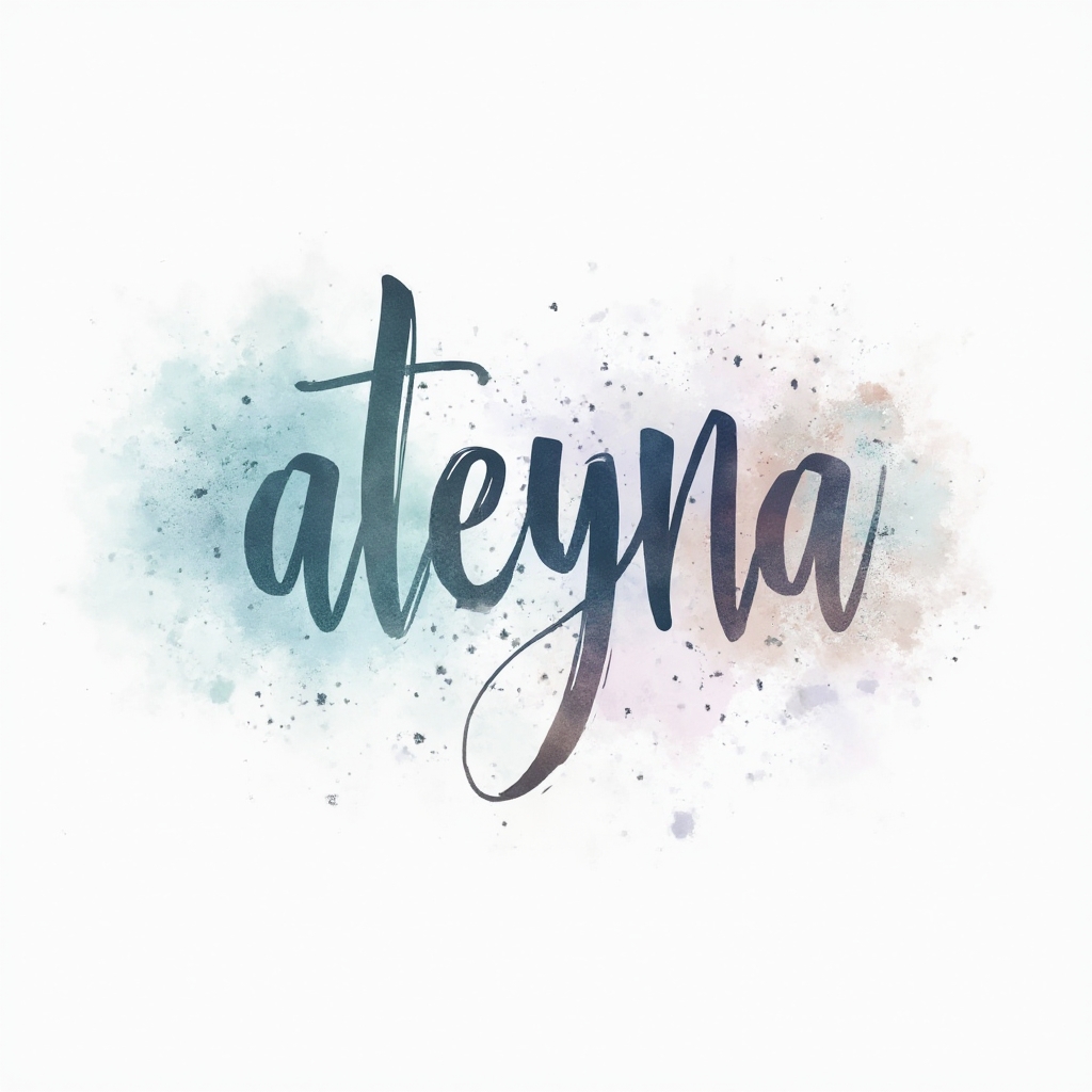 A delicate watercolor tattoo concept where the name "aleyna" flows in pastel brushstroke calligraphy with soft splashes and drips.