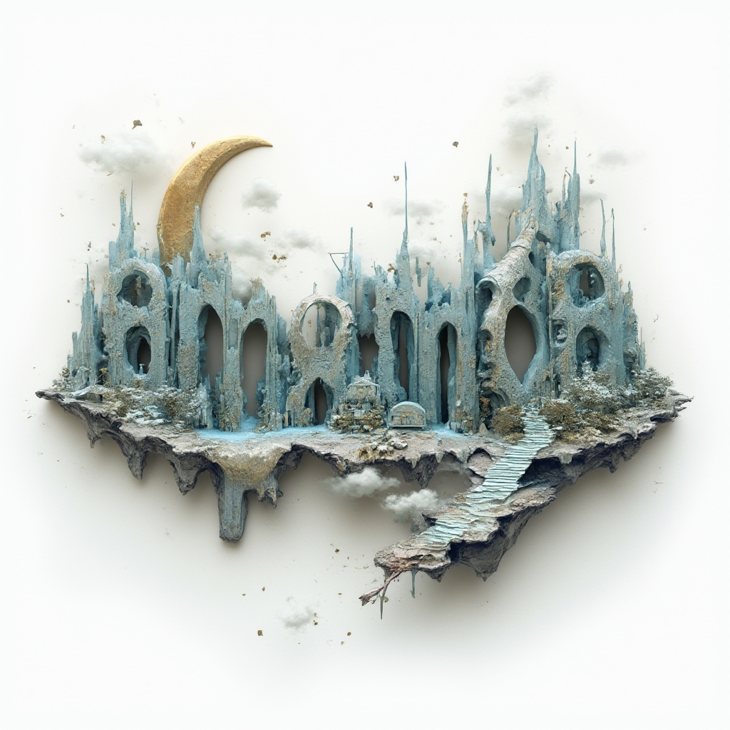 A dreamlike surreal composition where the letters of amanda become floating architecture, rising drips, and soft atmospheric forms.