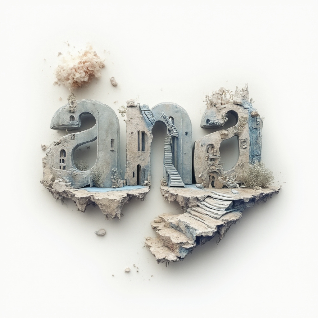 A surreal, dream-bending composition where the name 'ana' becomes an impossible floating structure.