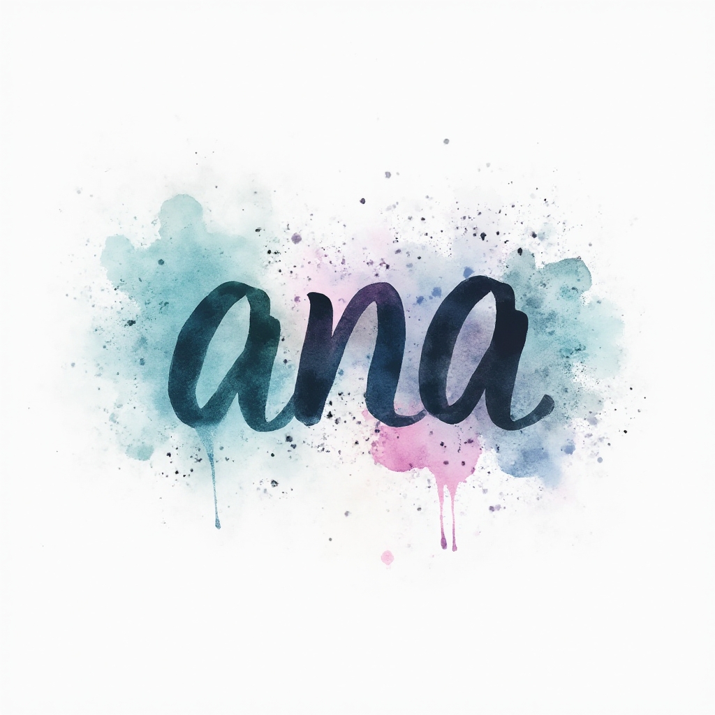 A soft watercolor-inspired design where the name 'ana' dissolves into vivid, flowing paint.