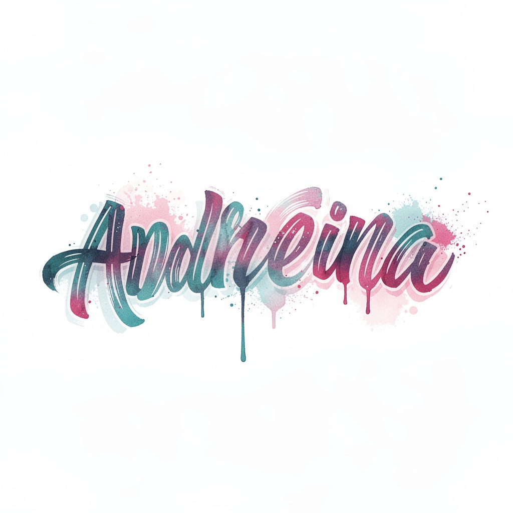 A fluid, watercolor-inspired tattoo concept where the name Andreina emerges from layered washes of color.