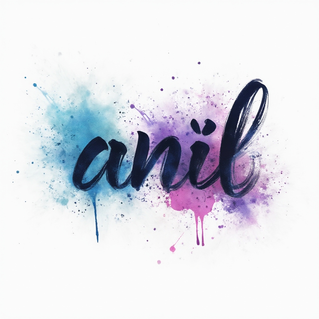 A bright watercolor tattoo concept where ‘anıl’ emerges from fluid inks and splashes for an expressive, painterly look.