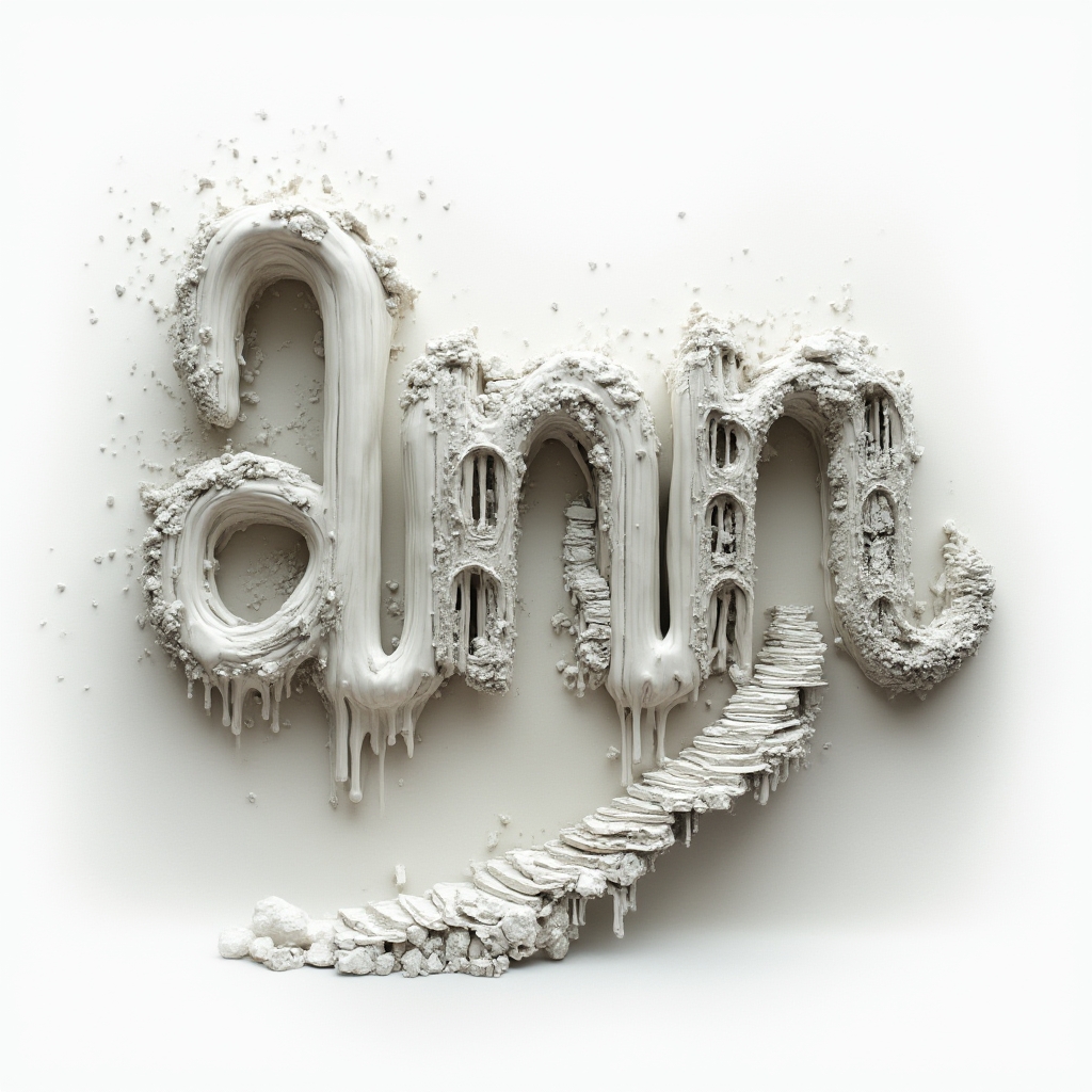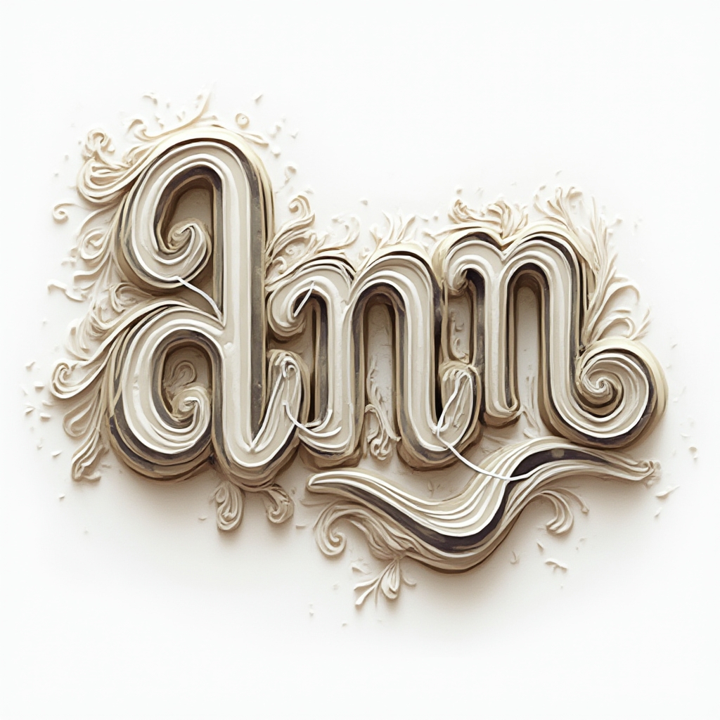 A surreal dreamscape tattoo design where “ann” is transformed into twisting, gravity-defying forms and abstract shapes.