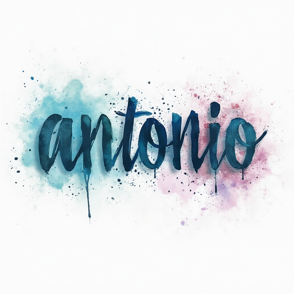 The name "antonio" turned into fluid watercolor calligraphy, with vivid splashes and soft gradients blending into an abstract ink cloud.