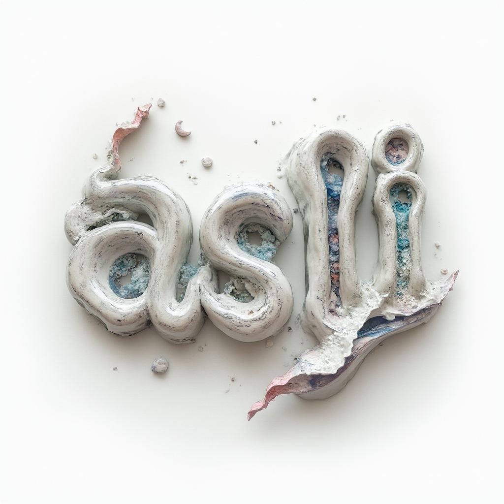 A surreal dreamscape where “aslı” is built from impossible floating structures, portals, and cosmic details on a white background.