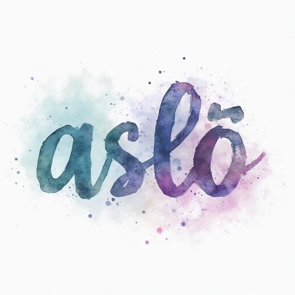 A soft, flowing watercolor treatment of “aslı” in painterly, multicolored strokes with delicate splashes on a white background.