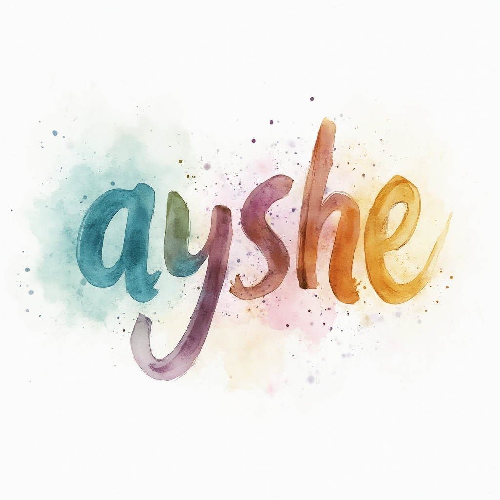 Ethereal watercolor lettering where “ayşe” dissolves into soft splashes and color blooms.