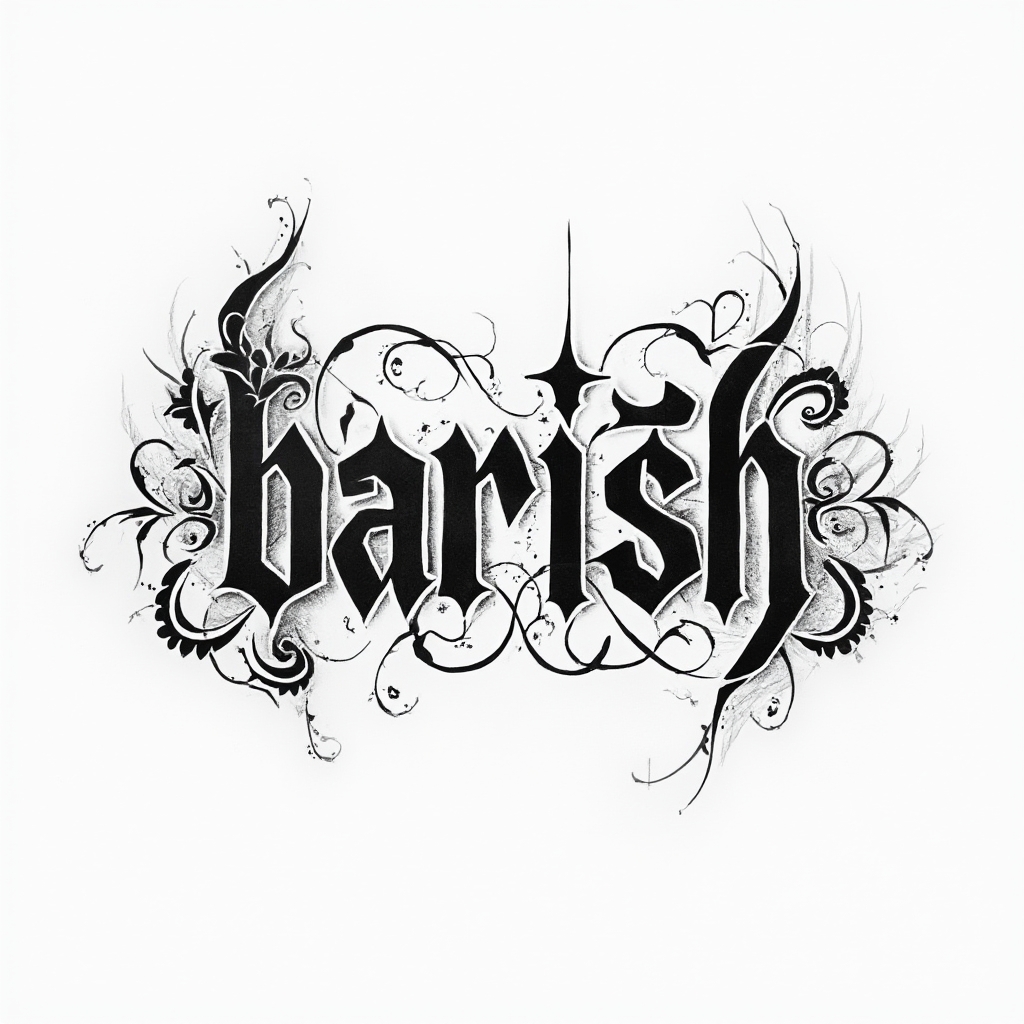 A surreal tattoo design turning the name ‘barış’ into dreamlike, impossible structures that float and twist through negative space.
