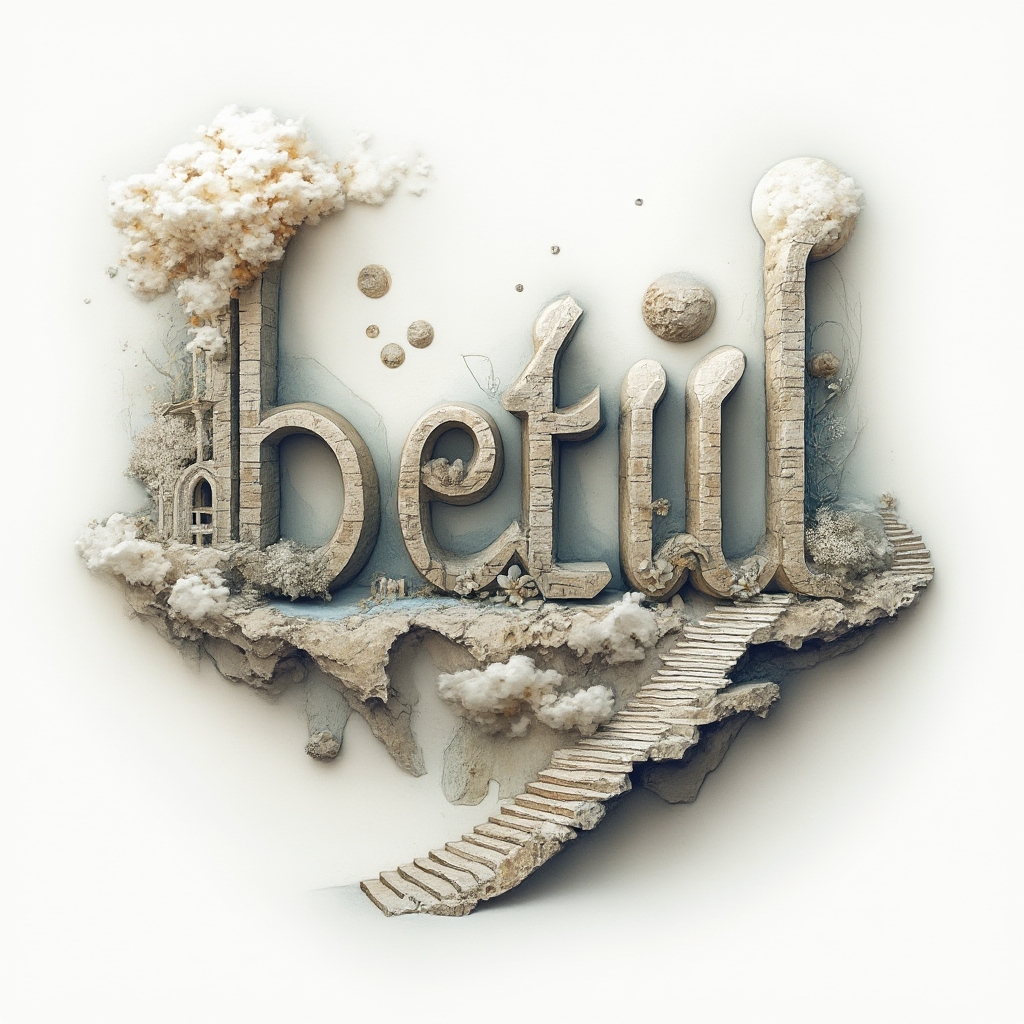 The name “betül” reshaped into dreamlike surreal architecture and floating islands.