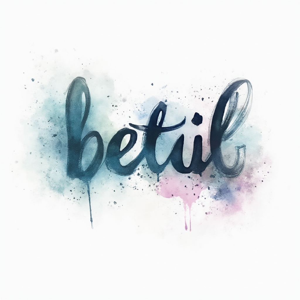 Ethereal watercolor lettering where “betül” dissolves into dreamy splashes and gradients.