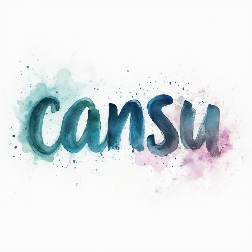 A flowing watercolor-inspired interpretation of "cansu" with soft gradients, splashes, and blooming paint effects on a clean white background.