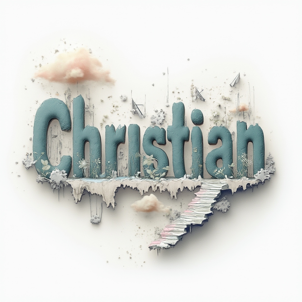 A surreal dreamscape where the letters of ‘christian’ become impossible sculptural forms floating in empty white space.