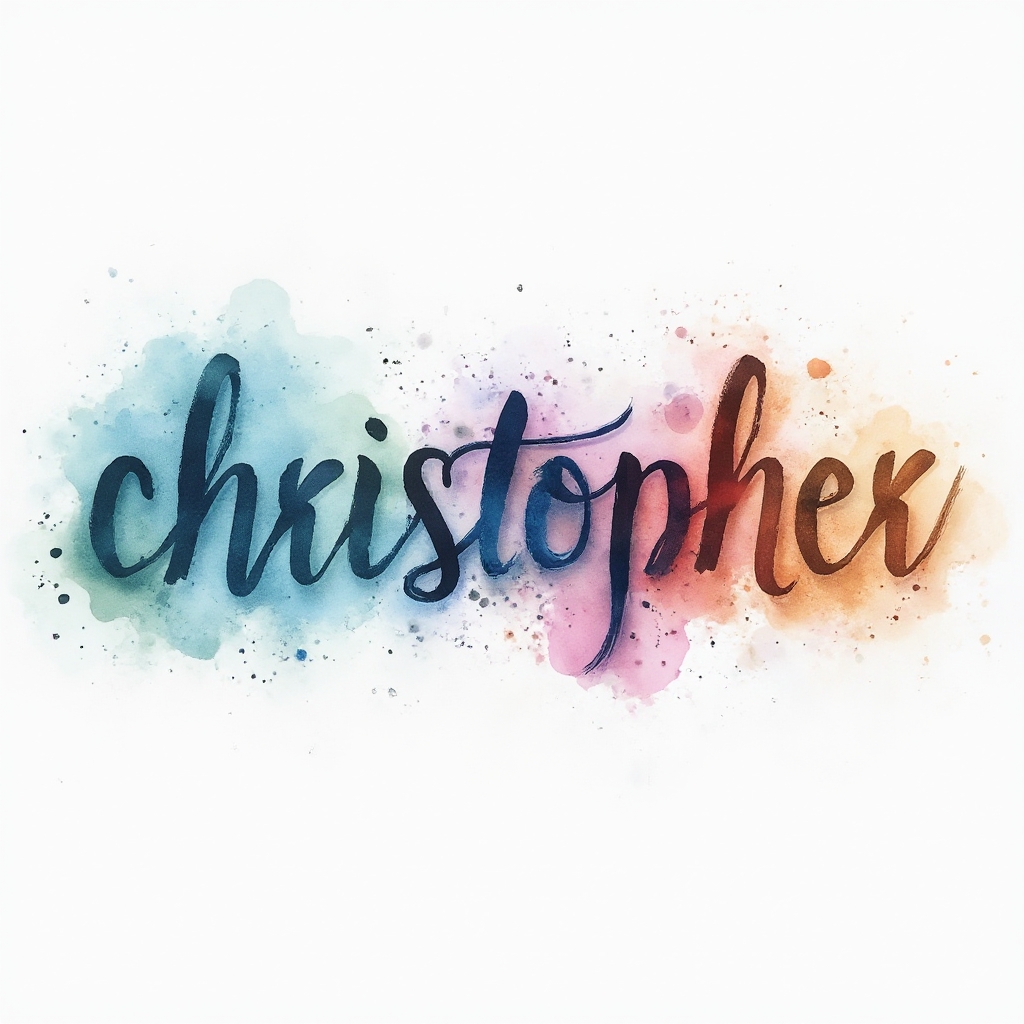 A vivid watercolor-inspired tattoo concept where the name christopher is formed entirely by painterly, blended brushstroke lettering.