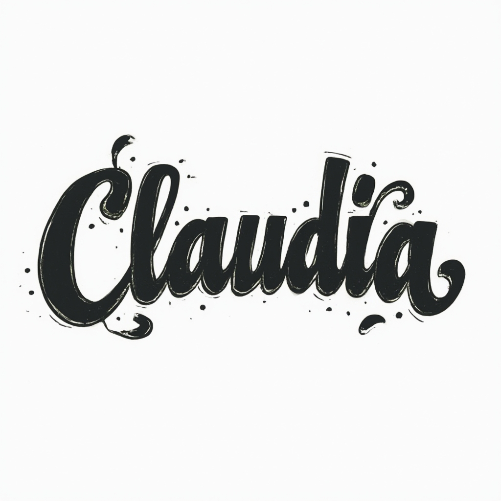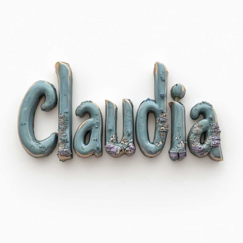 The name “claudia” transformed into surreal, melting sculptural letters with impossible folds and soft shading on a white background.