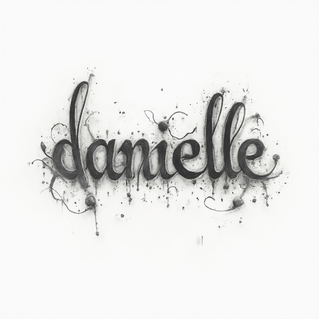 A surrealist tattoo idea where “danielle” becomes a set of impossible, morphing letters that drift and twist in a dreamlike space on white.