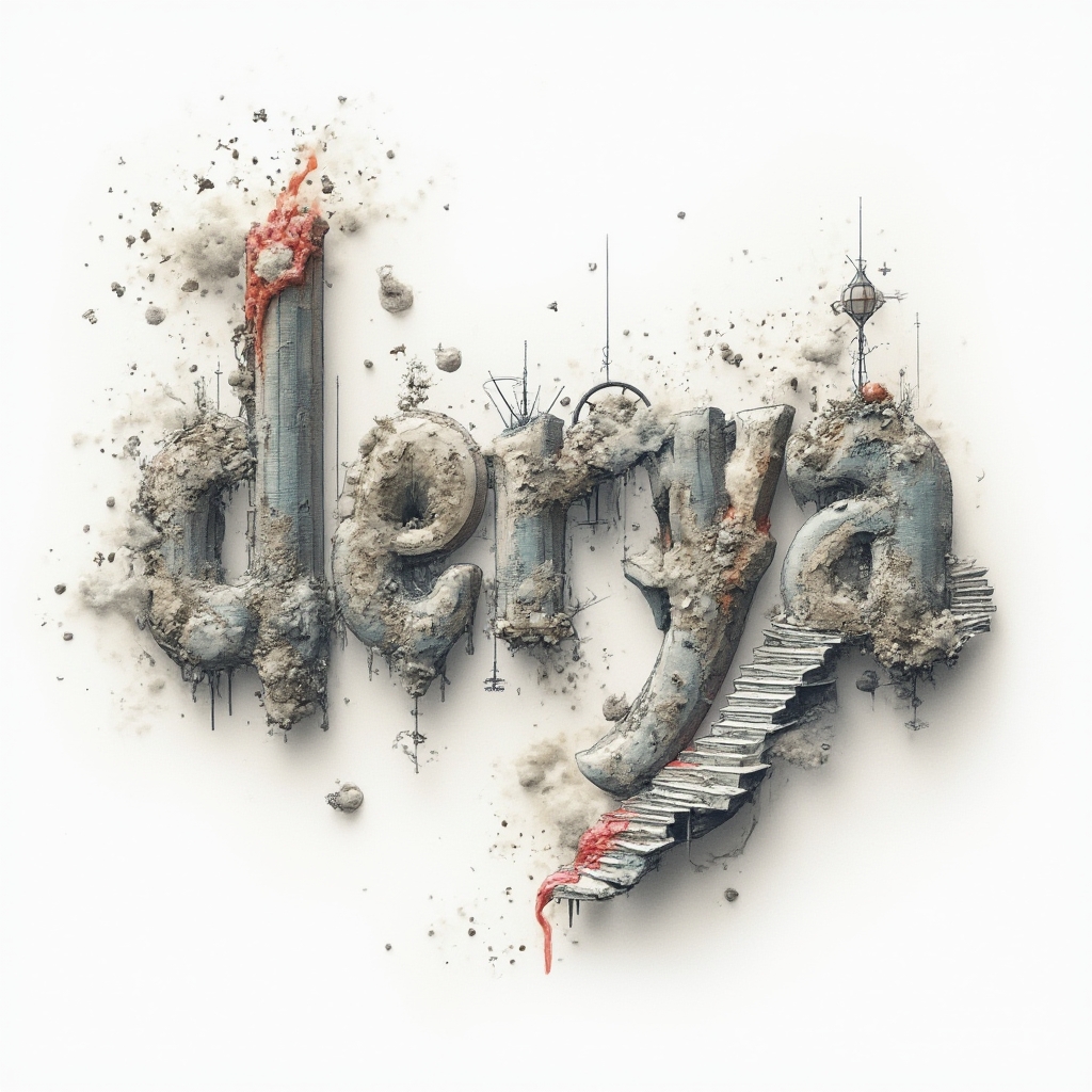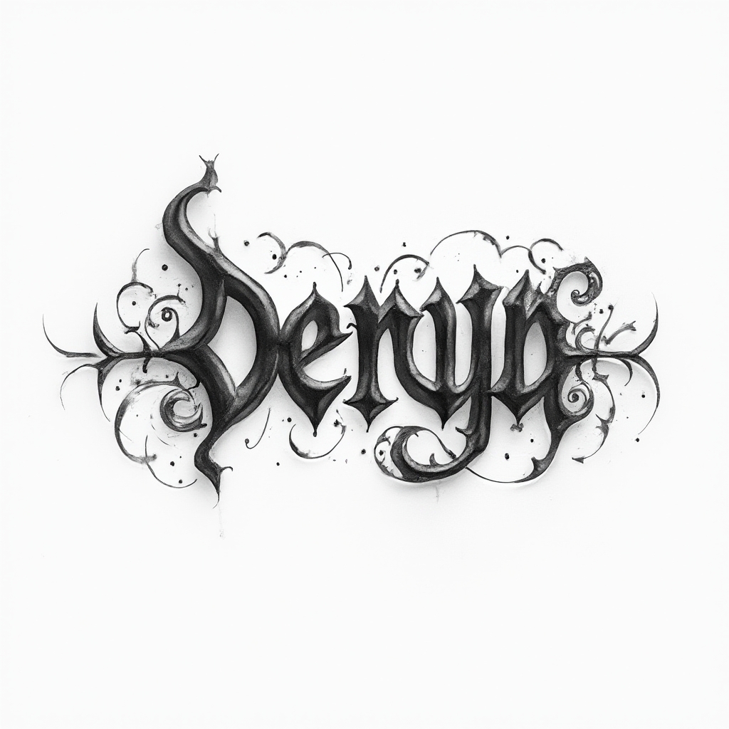 A surreal, dream-portal tattoo where 'derya' emerges from impossible structures, clouds, and bending forms.