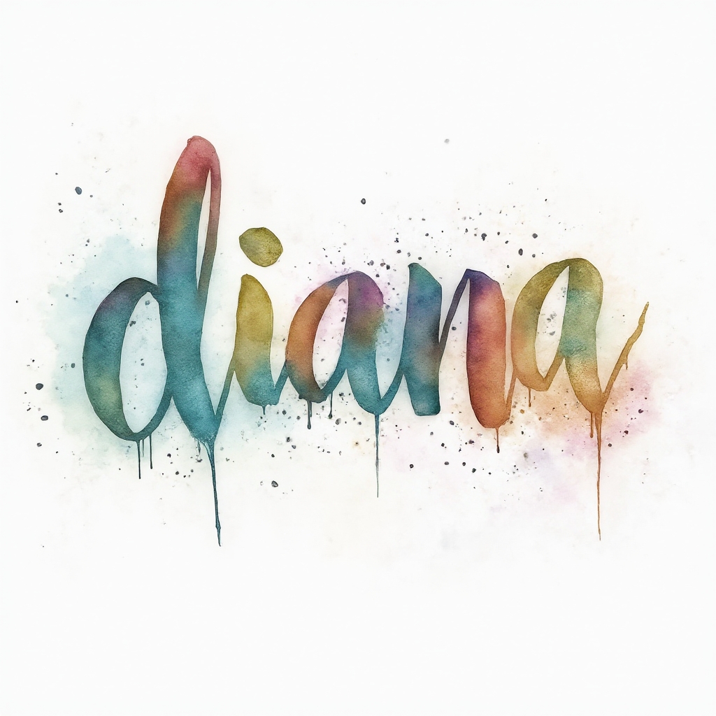 A soft, flowing watercolor interpretation of the name "diana" built from color splashes and gradients.