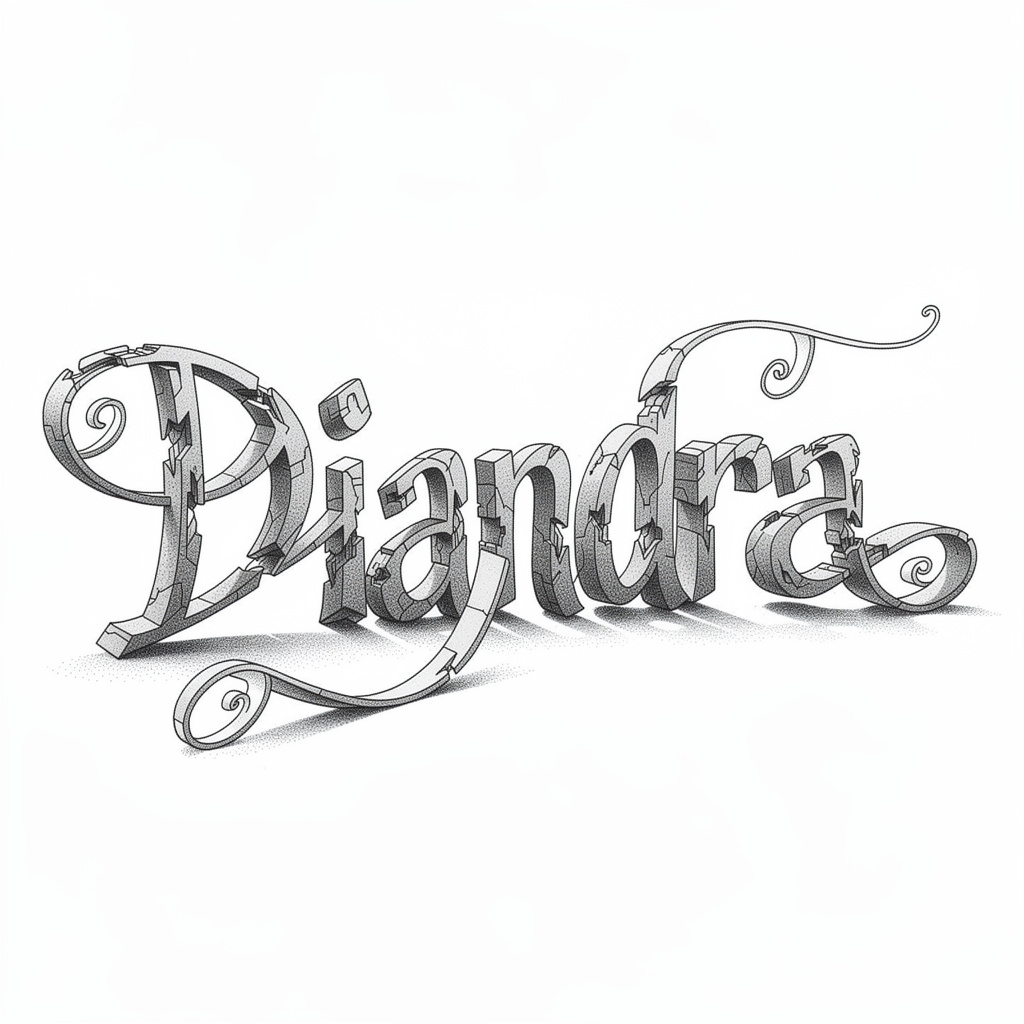 A surreal tattoo idea where the letters of Diandra twist into impossible forms and dreamlike contours.
