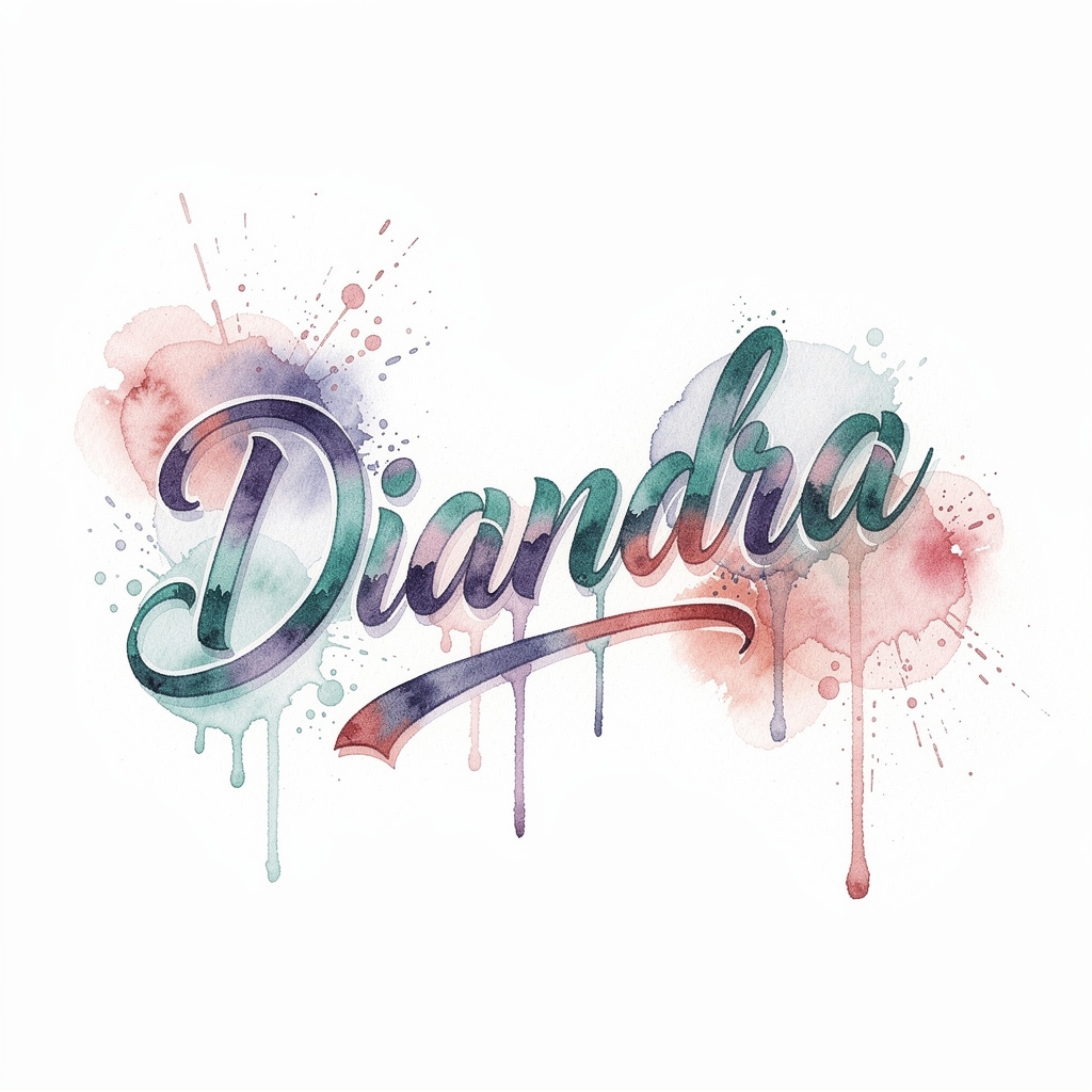 A flowing watercolor tattoo concept where the name Diandra melts into vibrant washes and splashes of color.