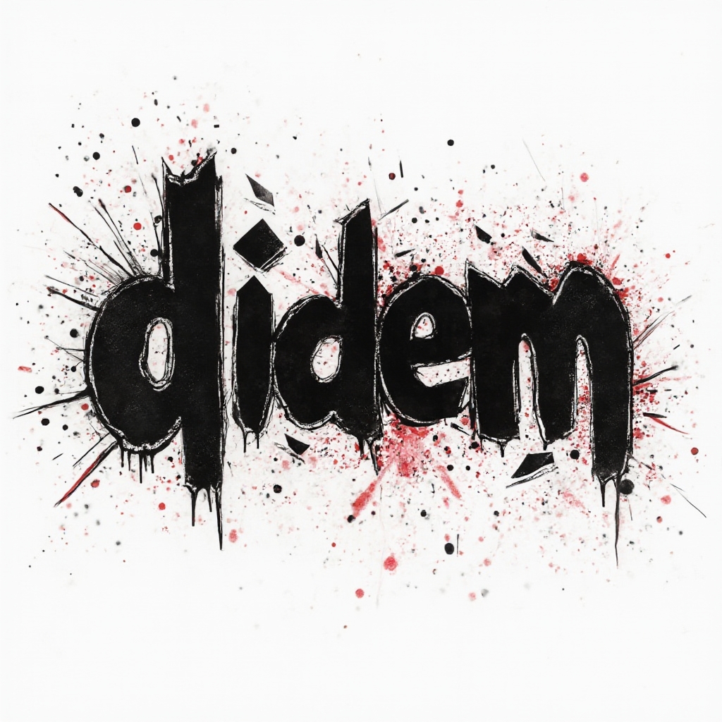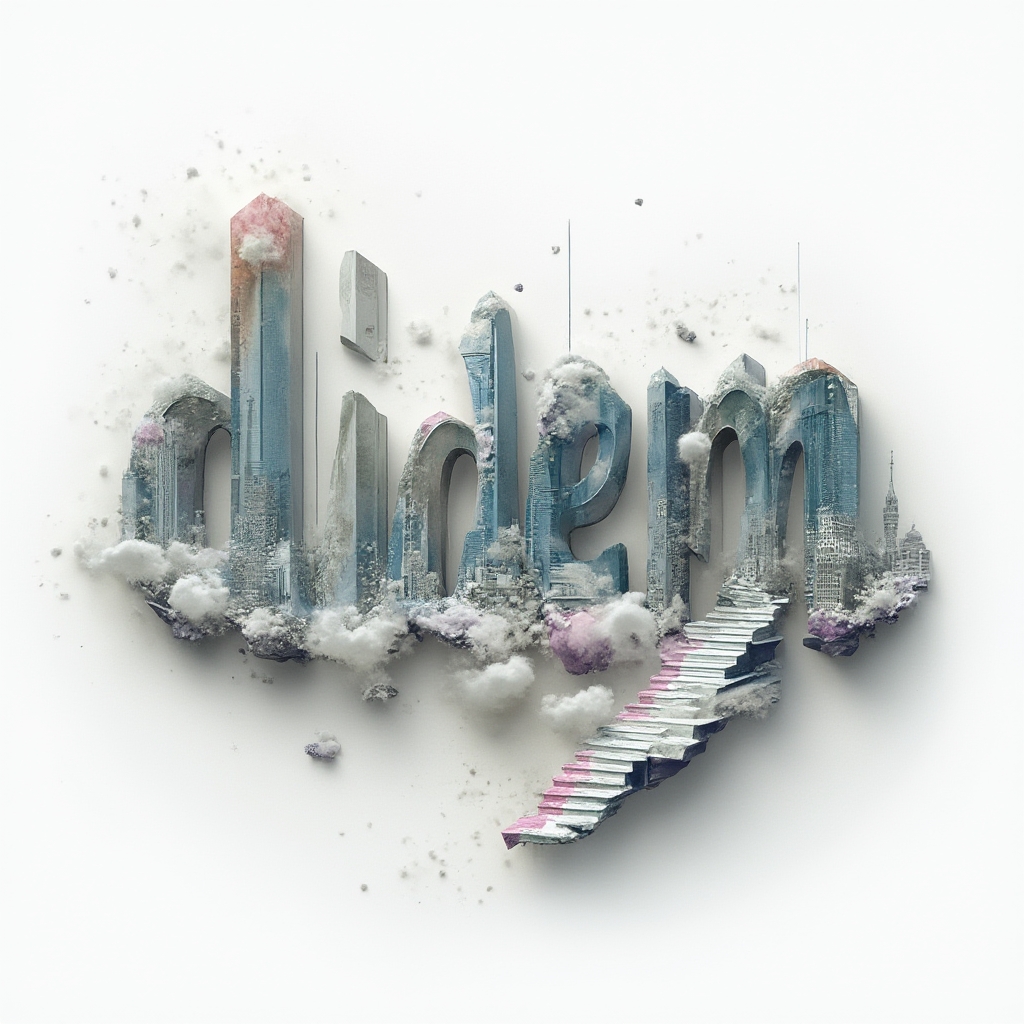 A surrealist tattoo concept where the name didem dissolves into dreamlike architecture, floating shapes, and smoky fragments across a white background.