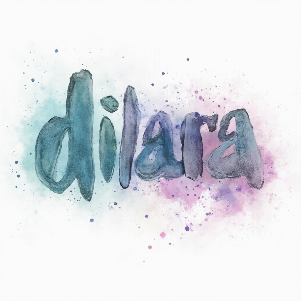 A light, flowing watercolor interpretation of 'dilara', where the letters dissolve into dreamy splashes and gradients.