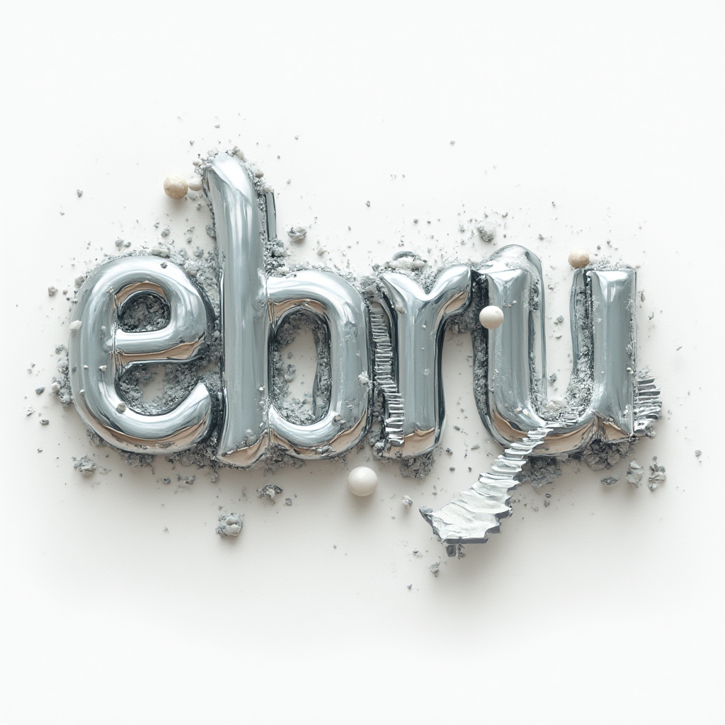 A surreal, dreamlike tattoo design where the letters of “ebru” melt into impossible shapes, orbs, and portals on a bright white background.