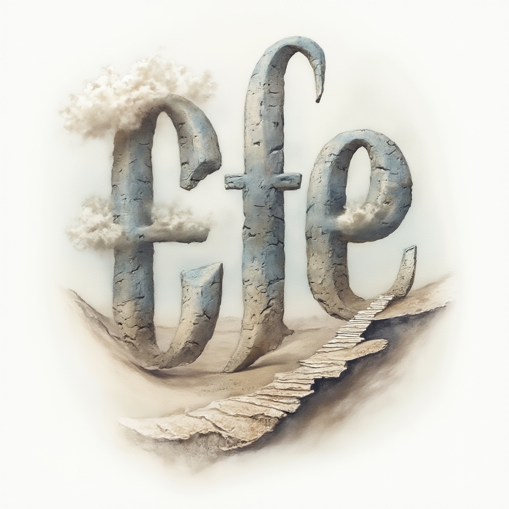 A dreamy surrealist tattoo concept where efe is hidden in melting, impossible letter shapes and floating fragments.