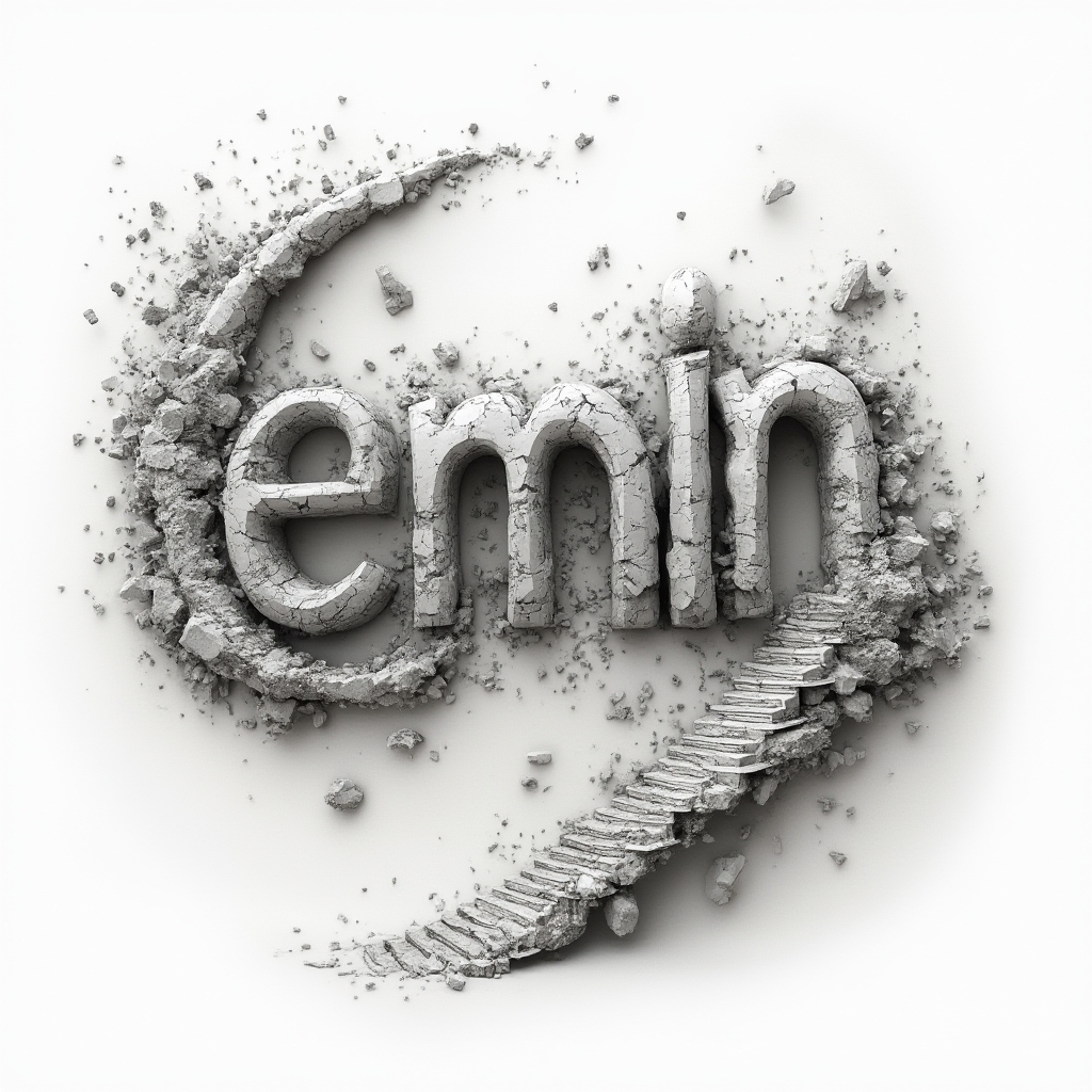 The name 'emin' transforms into a surreal structure of impossible architecture, floating shards, and dreamlike geometry.
