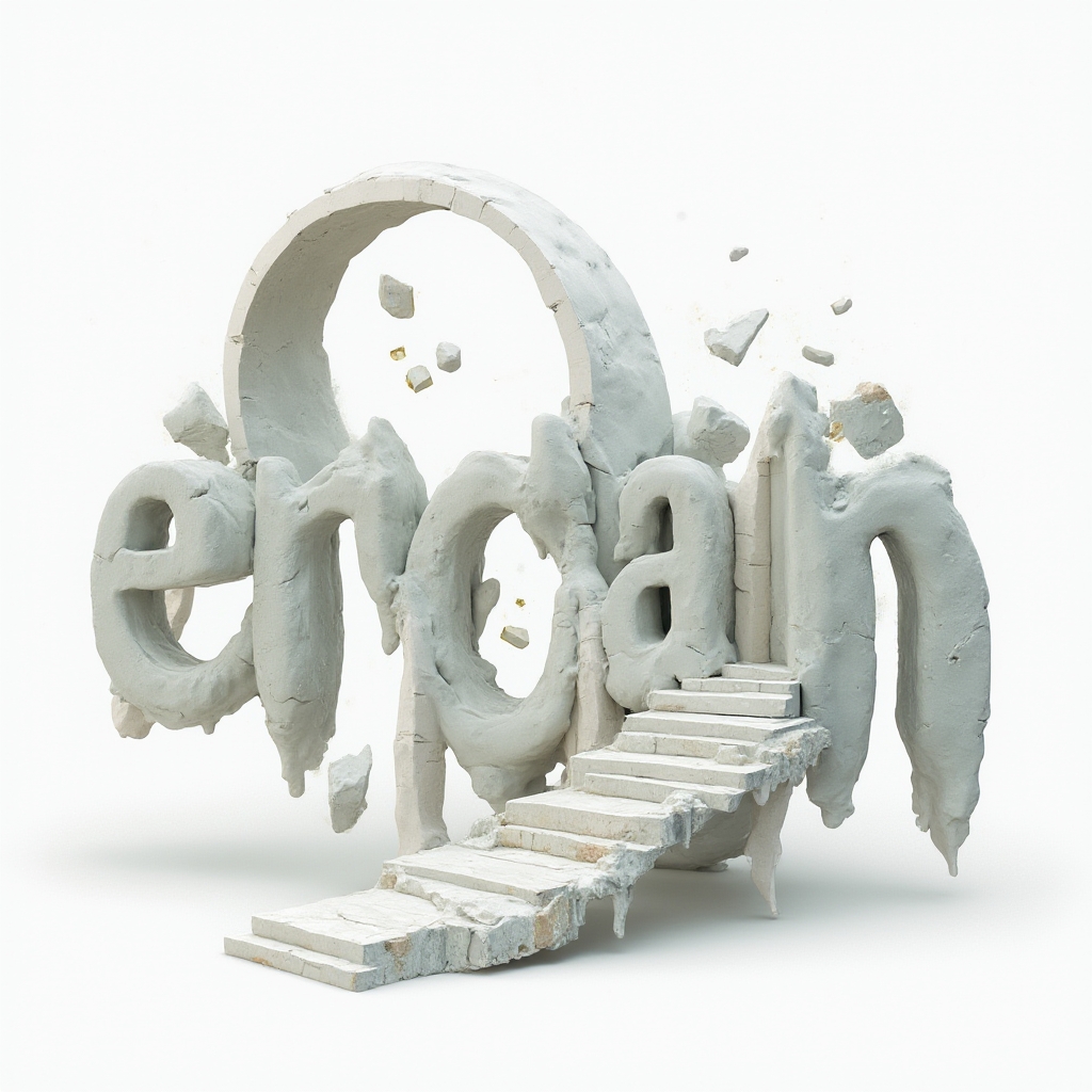 A surreal reimagining of "ercan" as impossible architectural forms, bending gravity and logic in a minimalist dreamscape.