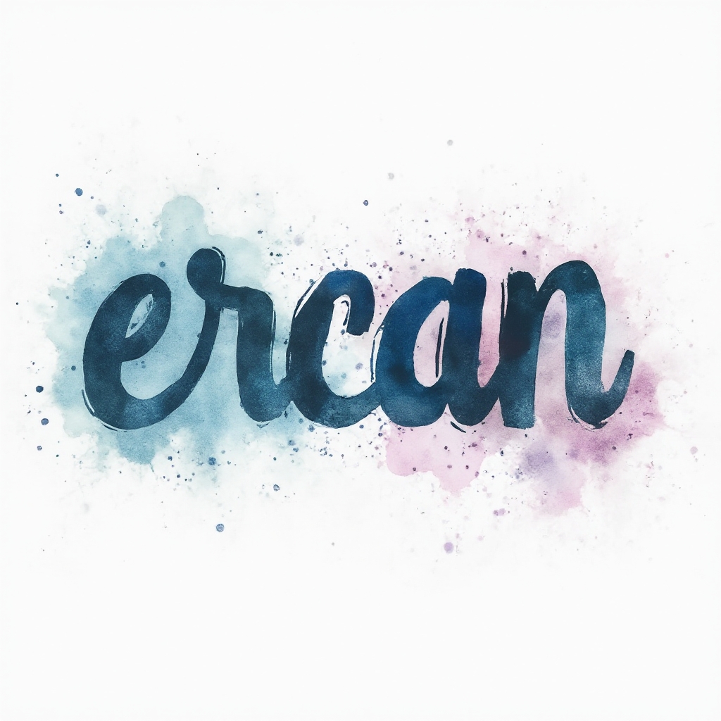 A flowing watercolor-inspired interpretation of "ercan," with soft gradients, splashes, and drips blending into expressive calligraphic lettering.