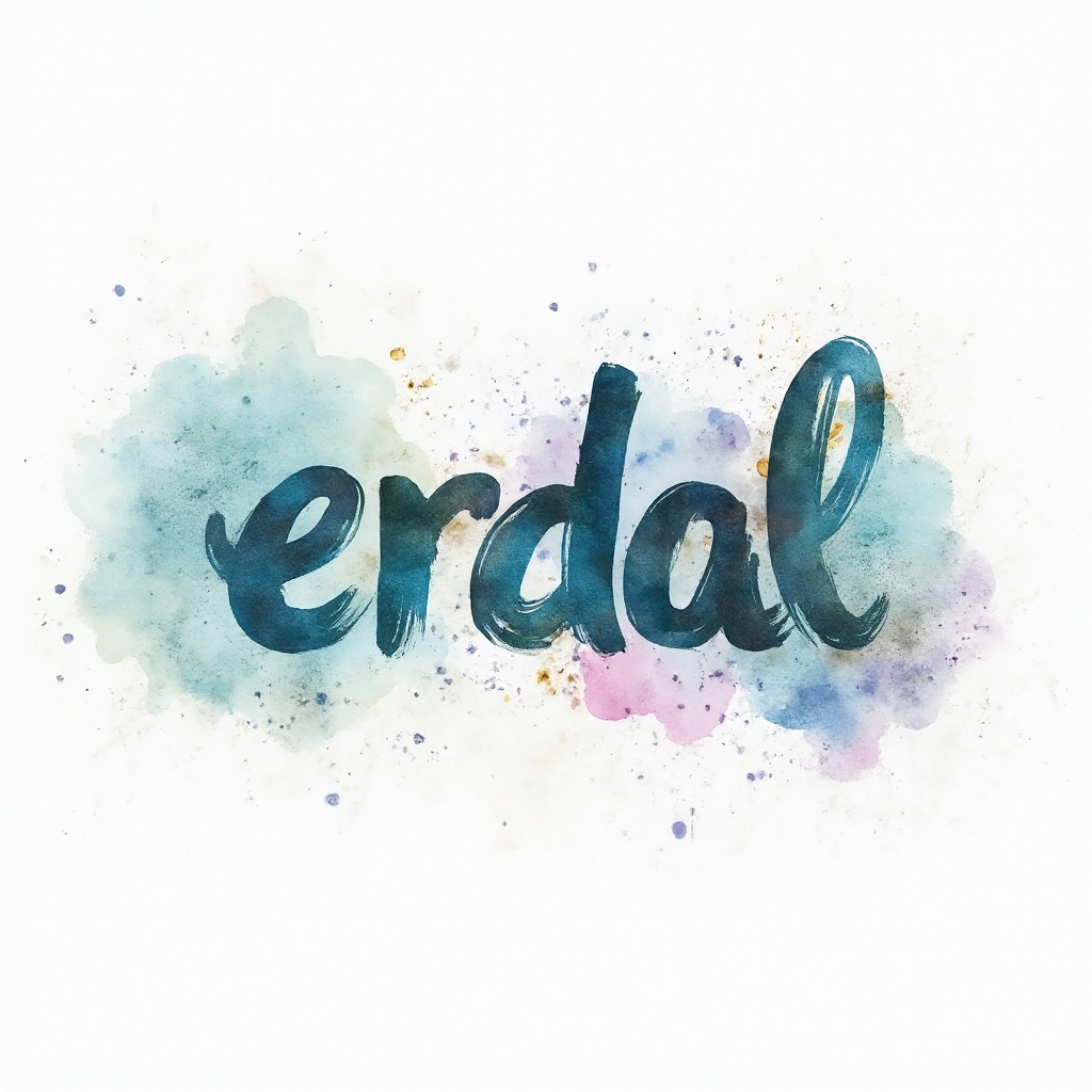 A vibrant watercolor-inspired concept where “erdal” melts into splashes, gradients, and fluid paint textures on a clean white backdrop.