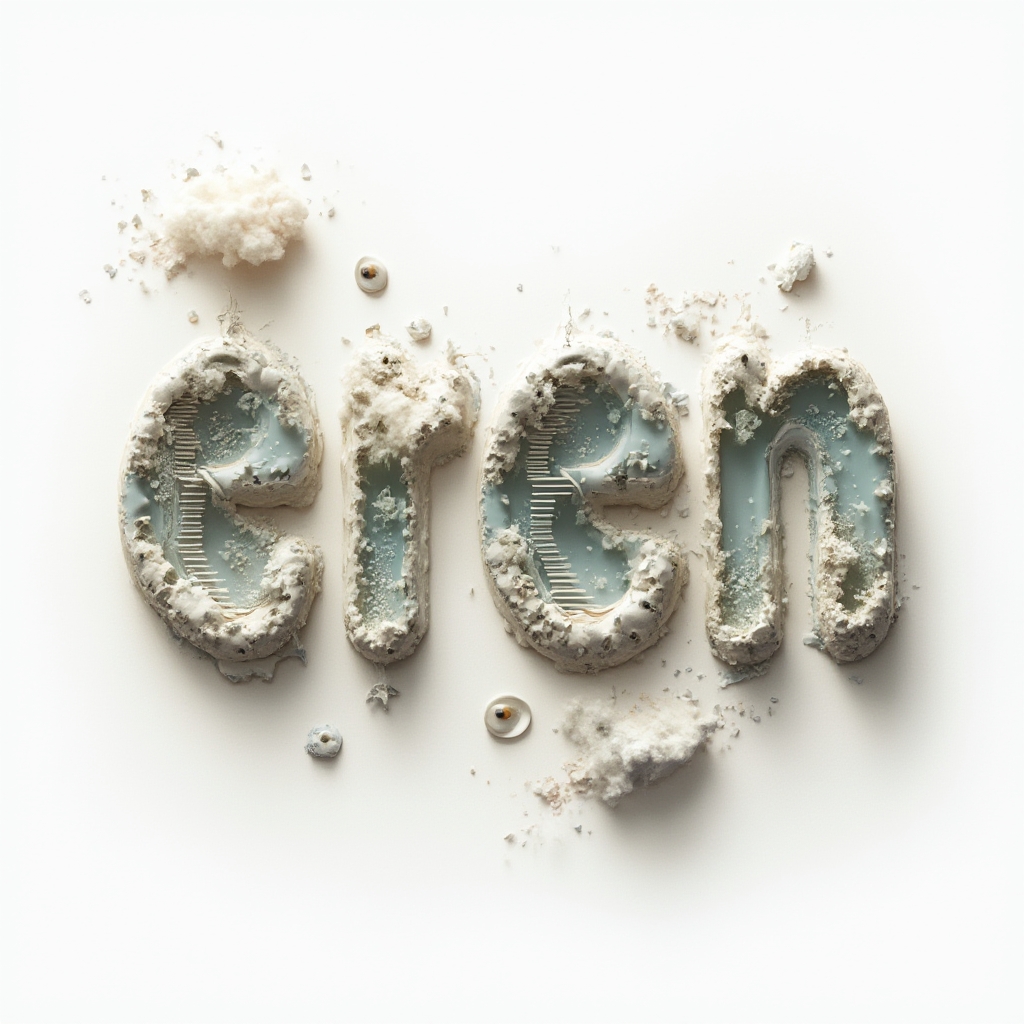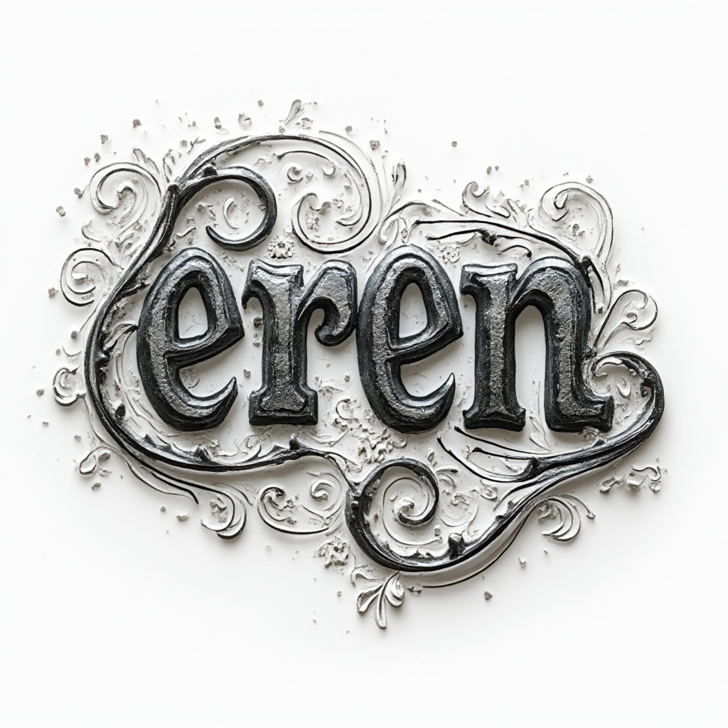 A surrealist dreamscape where the name “eren” is composed of impossible, melting, and floating forms, surrounded by enigmatic objects on a white background.