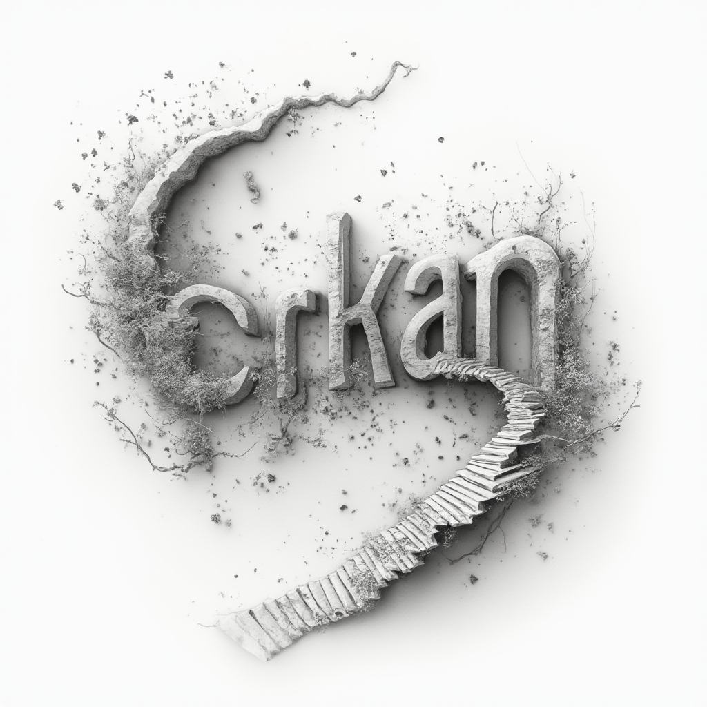 The name “erkan” transformed into a surreal, impossible structure—dreamlike architecture twisting into letterforms.