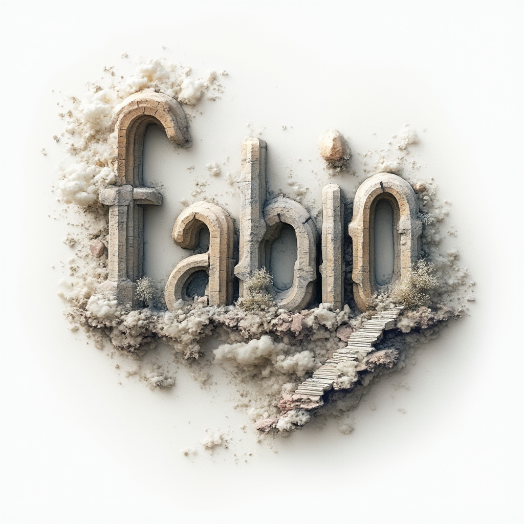 A surreal tattoo design transforming the name 'fabio' into floating, dreamlike structures and fluid forms on a pristine white background.
