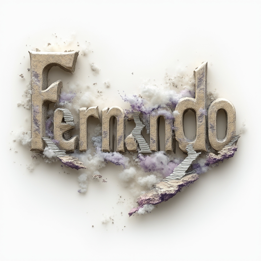 The name “fernando” rendered as a surreal floating architectural wordscape with impossible structures and dreamlike textures on white.