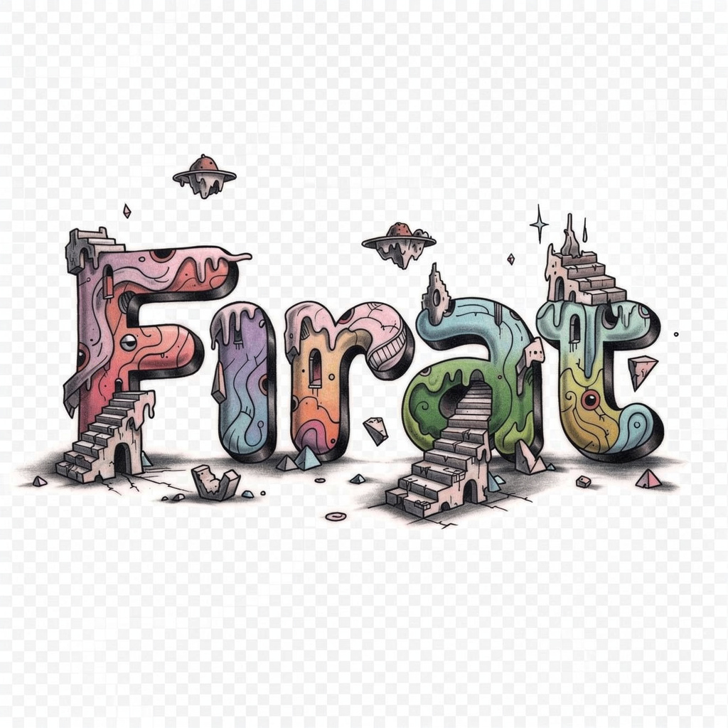 An imaginative surrealist tattoo design where the letters of Fırat transform into a dreamlike, abstract composition.