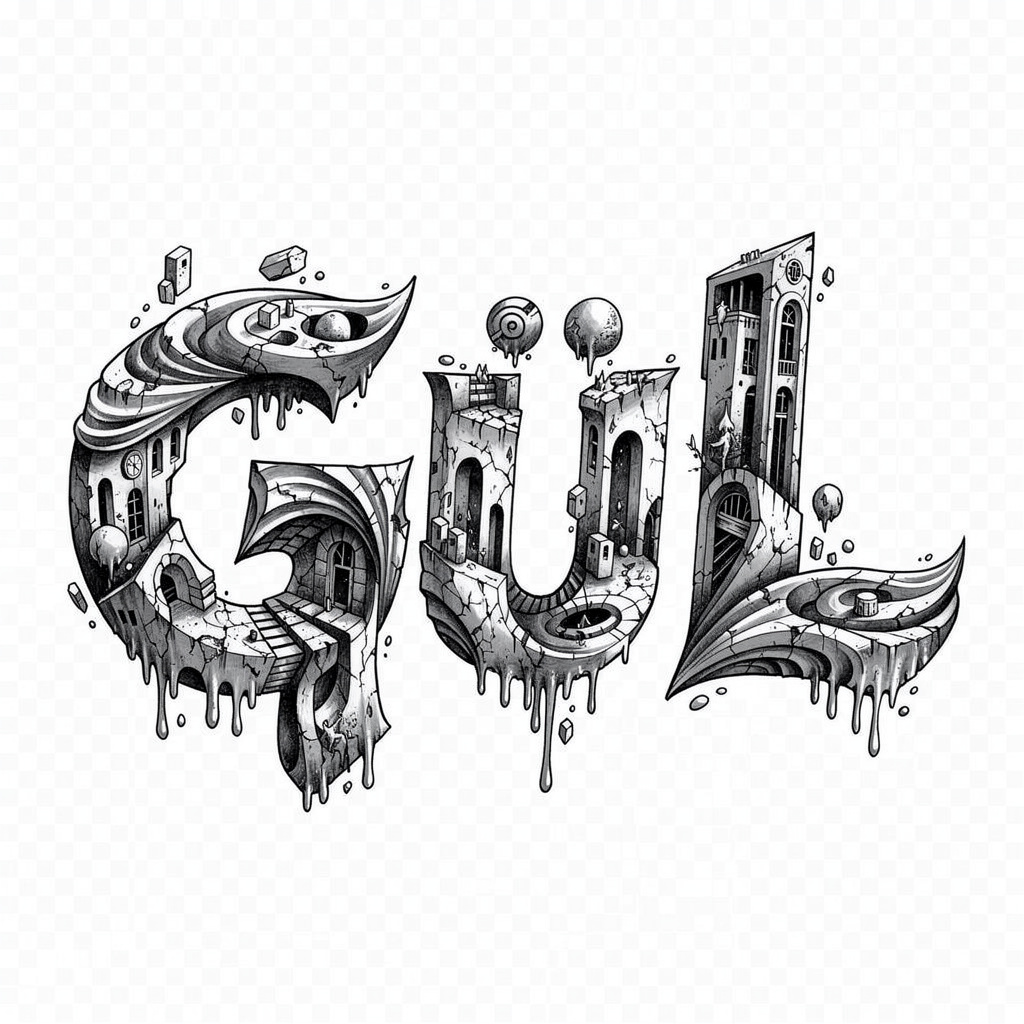 A surreal, dreamlike tattoo artwork where the name Gül emerges from warped, imaginative forms.
