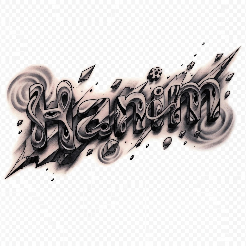 A surreal tattoo design where the name Hanim is woven into warped, abstract forms, creating a dreamlike, otherworldly wordmark.