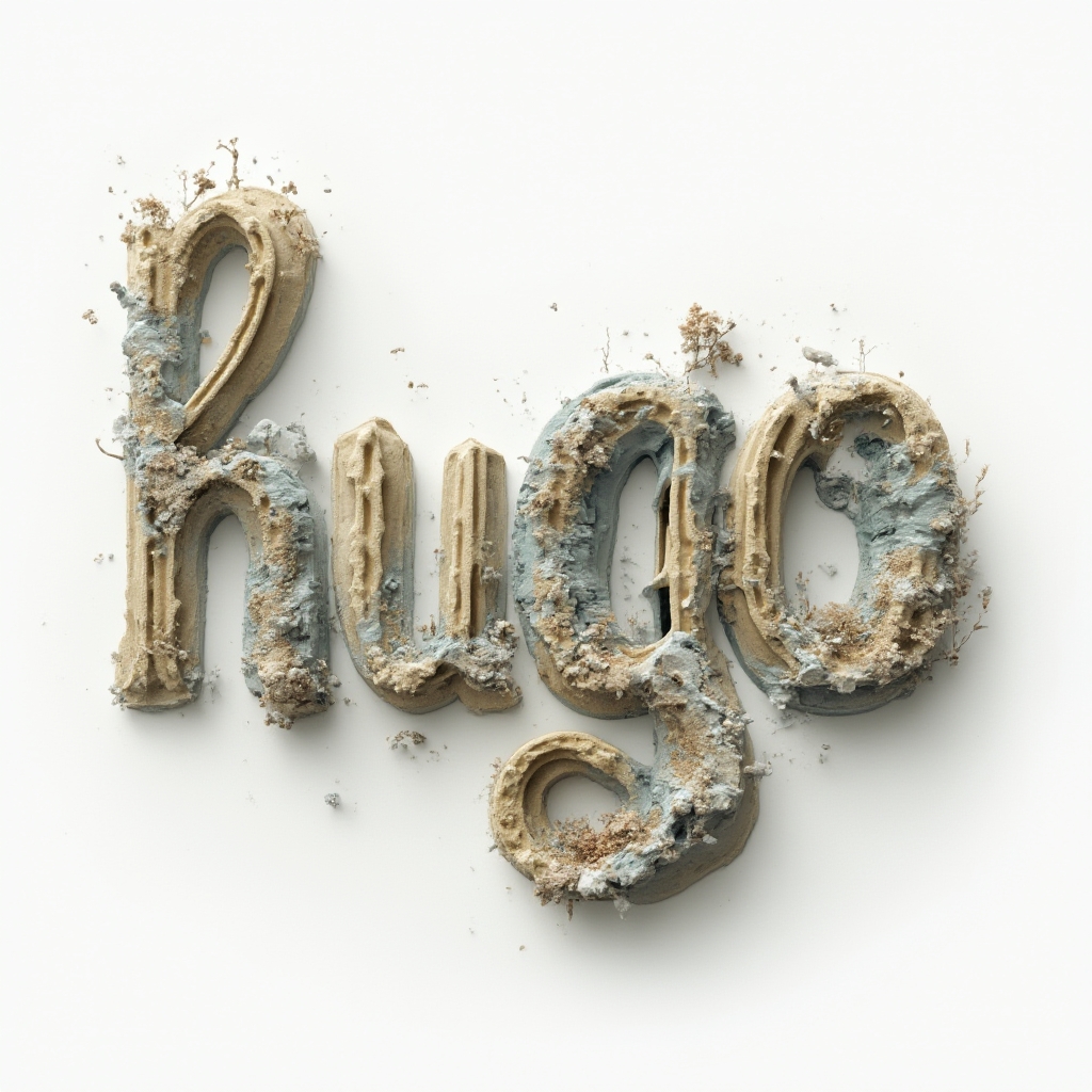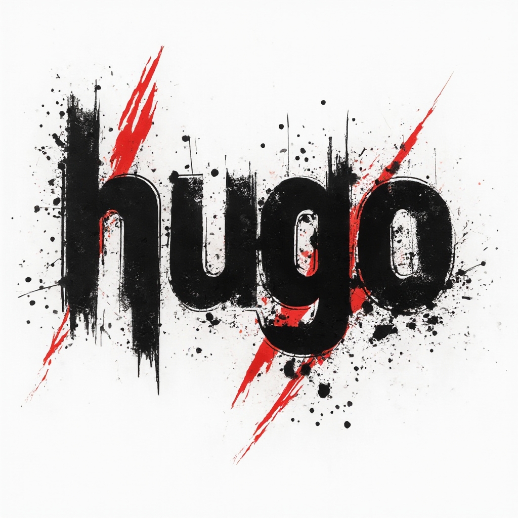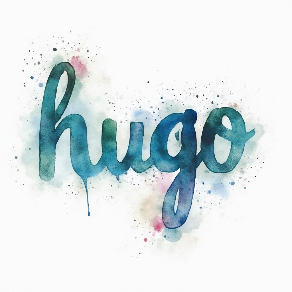 A vivid watercolor-style concept where the name “hugo” dissolves into splashes, drips, and soft gradients on white.