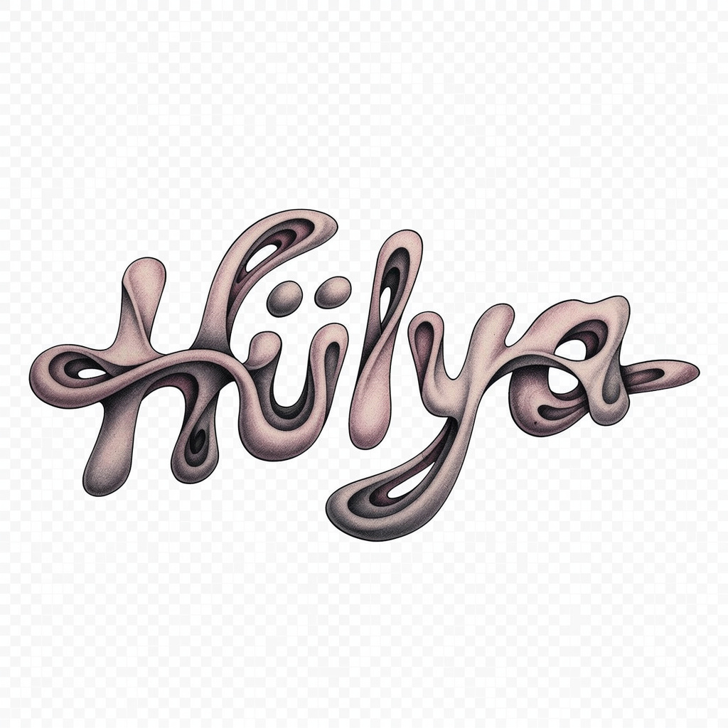 A surrealism-inspired tattoo concept where the letters of Hülya transform into strange, dreamlike forms while remaining readable.