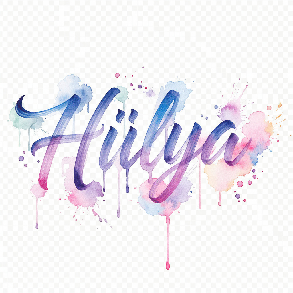 A delicate watercolor-inspired tattoo design where the name Hülya appears as fluid, painterly lettering with blended colors.