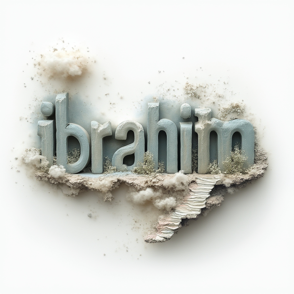 The name 'ibrahim' rendered as a surreal dreamscape of impossible structures and textures.