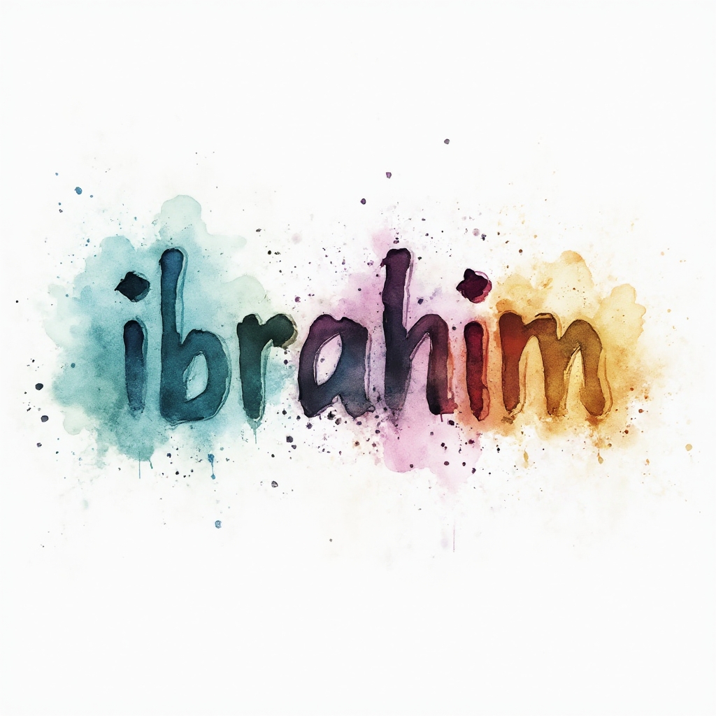 The name 'ibrahim' painted as fluid watercolor lettering, dissolving into colorful splashes and soft gradients.