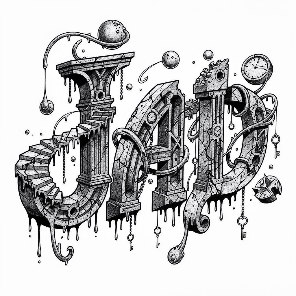 A surreal tattoo vision where abstract, dreamlike forms transform into the letters of the name Jad.
