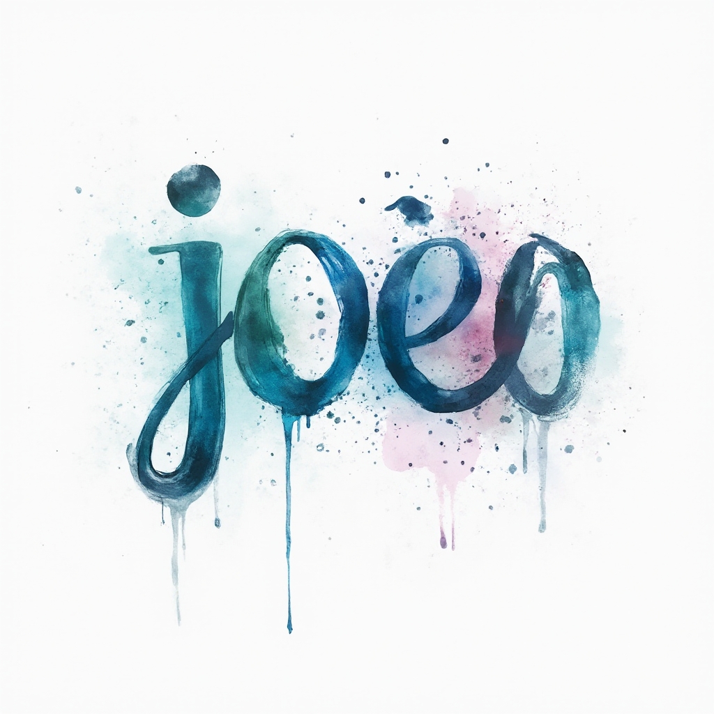 The name joão rendered as fluid watercolor calligraphy with vibrant splashes and soft gradients.