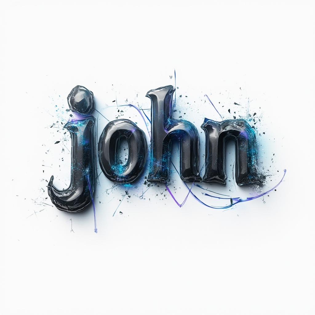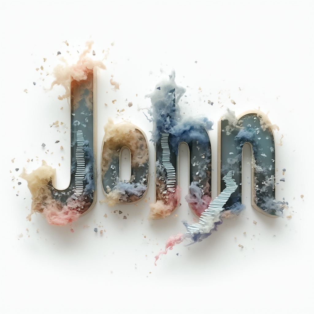 A dreamlike surreal vision where the name “john” becomes a bending, melting structure filled with strange geometric fragments and impossible shadows.