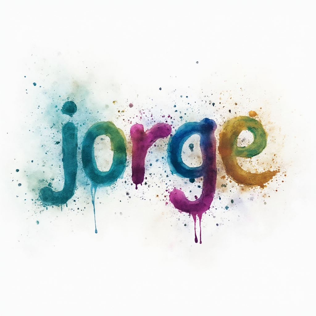 A vibrant watercolor-inspired design where "jorge" flows as painted brushstroke letters dissolving into colorful splashes and gradients.