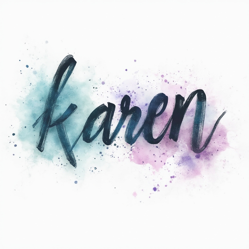 A soft, painterly watercolor interpretation of “karen,” where the letters dissolve into vibrant splashes and gradients.