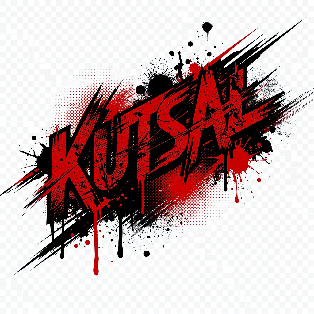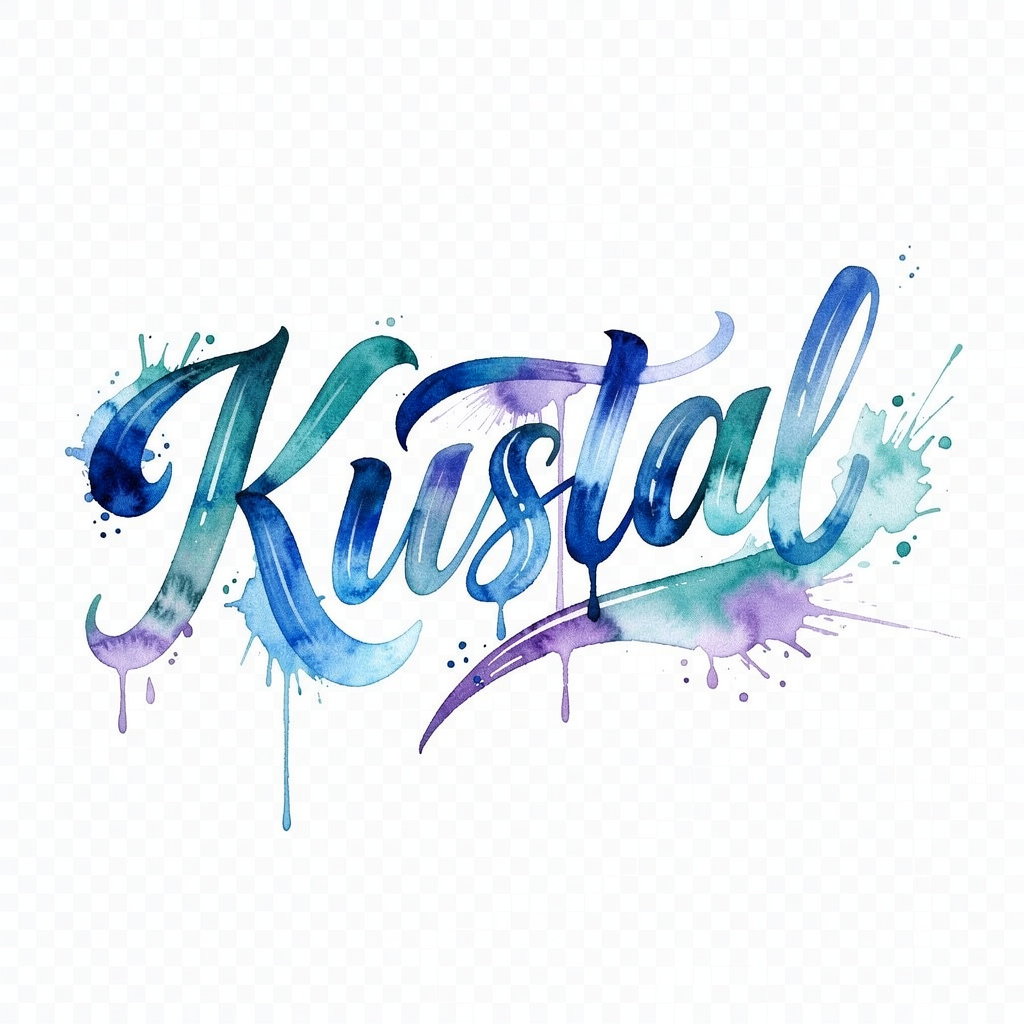 A soft, artistic watercolor tattoo rendering of the name Kutsal, where the letters emerge from flowing pigments and splashes.