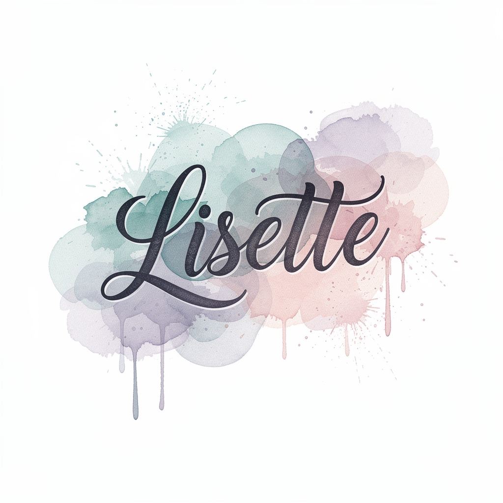 A delicate watercolor tattoo concept where the name Lisette dissolves into soft washes of color for a dreamy, artistic effect.